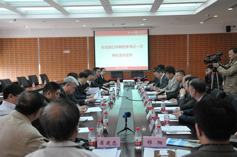 4月8日,山东省龙口市委书记韩世军一行访问东北大学,洽谈校地、校企合作事宜。东北大学副校长汪晋宽、中国工程院院士王国栋、研究生院院长巩恩普和科技处、对外联络与合作处等相关部门及学院负责人参加洽谈会。