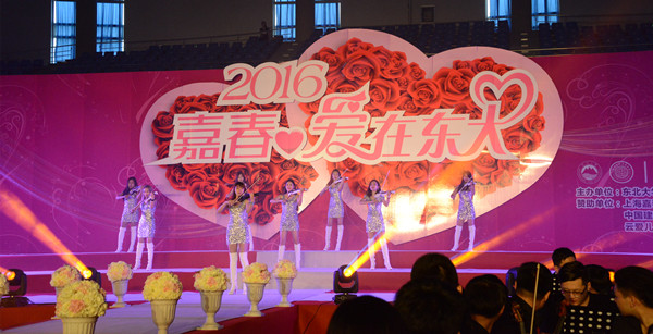 刘长春体育馆中,伴随着艺术学院师生交响乐团演奏的婚礼进行曲,主持人一一介绍新人的姓名,一对对新人依次出场缓步红毯,前行至阶梯式舞台中央。41对校友新人中,双方都是东大校友的为28对、单方是东大校友的为13对,年龄最小的23岁、最大的33岁。