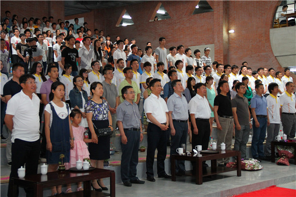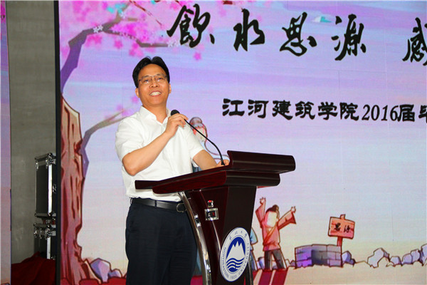 揭牌仪式后,刘载望、杨明等参加了江河建筑学院2016届毕业生谢师礼,刘载望为学院师生做了成长成才报告。