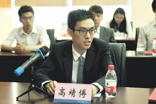 材料学院高靖博同学代表2017届校友年级理事发言。他表示2017届校友年级理事担负着传承东大精神的光荣使命,一定不辜负母校期待,努力发挥年级理事联络职能,尽职尽责地完成各项工作,成为母校与校友之间紧密联系的纽带。