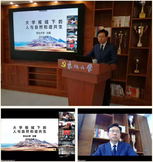 5月8日下午,东北大学副校长孙雷以“大学视域下的人与自然和谐共生”为题,通过“现场+云端”的方式为分管部门党员及联系学院师生讲授专题党课。党课主场设在主楼1417党员活动室,会场设置了视频和音频的同步直播,相关部门负责人在现场学习,各部门设置分会场进行在线收看,其他居家办公和学习的师生在“云端”观看学习。浑南校区管委会、沈河校区管委会、基建管理处、对外联络与合作处、继续教育学院、工商管理学院、软件学院、地方校友会代表、校友志愿者协会等300余名师生校友参加了会议。会议由对外联络与合作处党支部李鹤处长主持。