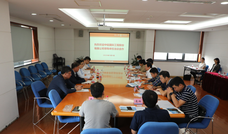 张建首先对中铝国际的发展历程、企业特点优势、品牌影响力、公司的未来规划进行了介绍。张建对东北大学的建设发展和取得的科技成果表示祝贺,对与东北大学的深化合作表示期望。张建提出了在交通、市政、石油等领域与东大的合作需求,希望进一步深化科技合作、人才培养相关内容。朱佳明简要进行了公司情况,希望与东北大学共建研究院、共同承担科研项目,共同探索人才培养的创新之路,通过深度校企合作,实现共赢发展。