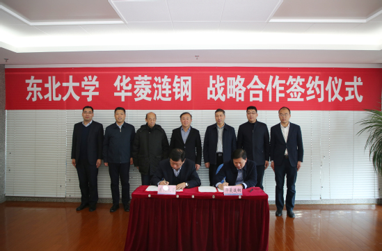 12月8日,东北大学与华菱涟钢战略合作签约仪式在主楼1401室举行。湖南华菱涟源钢铁有限公司党委书记、执行董事肖尊湖,副总经理李光辉,东北大学校长赵继,中国工程院院士王国栋,副校长孙雷出席会议。孙雷和李光辉分别代表校企双方共同签署了战略合作协议。合作双方就进一步深入合作进行深入交流。