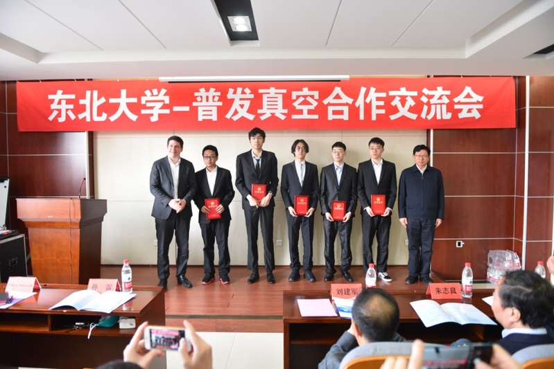 朱利安•瓦伦汀在致辞中指出,普发真空作为全球顶尖、具有131年发展历史的知名真空企业,一直与东北大学等各大院校保持着亲密的联系与合作。东北大学在真空基础学科领域方面拥有深厚的专业知识和教学背景,在中国真空学术界、科研领域和产业领域具有带头作用,与半导体、新材料、新能源、航空航天等领域的企事业单位具有良好的合作关系。普发真空未来将加强与东北大学在技术交流、派遣实习生、共建实验室等方面的合作,助力东北大学真空专业乃至中国真空领域更好更快地发展。孙雷和朱利安•瓦伦汀共同为获得“普发真空奖学金”的学生颁发获奖证书。