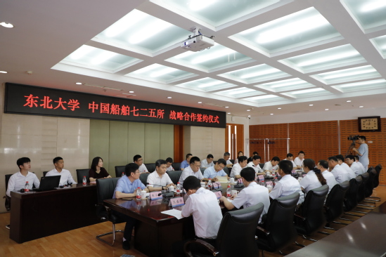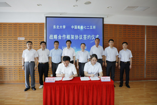 7月16日,东北大学与中国船舶集团有限公司第七二五研究所战略合作框架协议签约仪式在汉卿会堂308室举行。中国船舶集团有限公司第七二五研究所所长王其红、副所长廖志谦,东北大学校长冯夏庭、副校长孙雷出席签约仪式。中国船舶集团公司首席专家、七二五所研究室、科技与信息化处、人力资源处等相关部门负责人,东北大学科学技术研究院[国防科技发展研究院]、人事处、对外联络与合作处、冶金学院、材料科学与工程学院、轧制技术及连轧自动化国家重点实验室、航空动力装备振动与控制教育部国防重点实验室、秦皇岛分校资源与材料学院、秦皇岛分校科技处等相关负责人参加签约仪式。