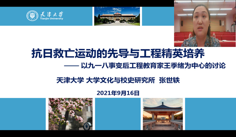 在主旨报告环节,天津大学文化与校史研究所副所长张世轶副研究馆员做《抗日救亡运动的先导与工程精英培养——以九·一八事变后工程教育家王季绪为中心的讨论》报告。