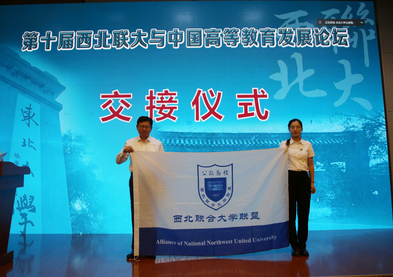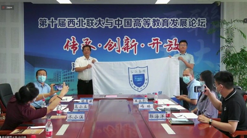 最后,论坛确定下一届的承办高校为河北师范大学,两校通过视频进行了会旗交接仪式。
