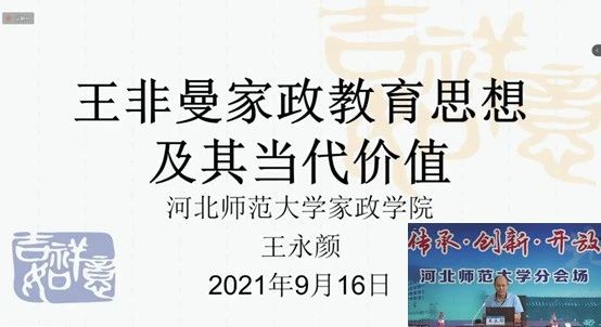 河北师范大学家政学院副院长王永颜副教授做《王非曼家政教育思想及其当代价值》报告。