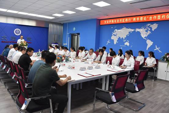 9月9日下午,沈阳市沈河区与东北大学文法学院“两邻”理念校、地合作签字仪式在文管学馆A210室举行。沈河区人民政府副区长陈青,沈河区民政局局长鲍向宏,东北大学党委常委、组织部部长王辉,文法学院、跨文化战略研究院有关负责人,沈河区各街道党工委书记,社区党委书记,文法学院教师及学生党支部书记代表共30余人出席签约仪式。