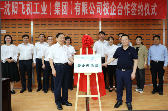 双方签订了“沈飞罗阳助学金”捐赠协议和校企俱乐部合作协议。张国臣和李长强为东北大学沈飞校企俱乐部揭牌。