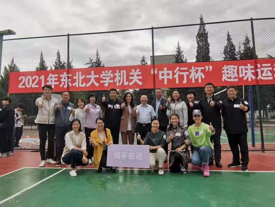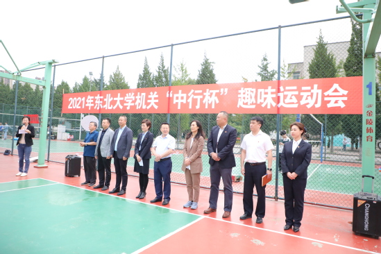 9月22日,2021年东北大学“中行杯”机关趣味运动会在二舍篮球场举行。中国银行沈阳分行副行长林琳,中国银行沈阳自贸区支行行长王达志、副行长崔健,中国银行东北大学支行副行长田佳凡,校党委副书记张国臣出席开幕式。机关党委、校工会等有关部门负责同志,机关各部处参赛队员300余人参加开幕式。