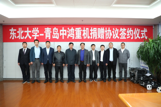 11月2日下午,青岛中鸿重机捐赠协议签约仪式在主楼1401室举行。青岛中鸿重型机械有限公司董事长宁晓峰,总工程师齐吉富,电气电控研究所所长李达,东北大学副校长孙雷,对外联络与合作处、创新创业学院、机械工程与自动化学院、T-DT机器人创新实验室相关负责人出席仪式。