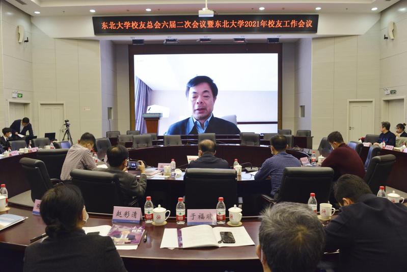 12月12日,东北大学校友总会六届二次会议暨东北大学2021年校友工作会议以视频方式召开,全球各地校友代表与母校视频连线,共商服务学校发展大计,共谋开创校友工作新篇。东北大学校长冯夏庭、副校长孙雷、校友总会会长赵继出席会议。在校东北大学校友总会理事和学校校友工作委员会委员在主楼824会议室参加会议,其他校友总会理事和各地校友会代表通过视频连线参加会议。