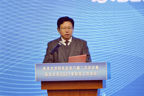 孙雷代表校友总会作《东北大学校友总会2021年度工作报告曁百年校庆筹备工作介绍》报告,报告从本年度校友工作回顾和百年校庆工程的筹备进展两个方面展开。孙雷表示,东北大学校友总会以培育“饮水思源的爱校精神”为初心使命,紧密围绕学校“双一流”建设和百年校庆工程统筹推进工作,践行新发展理念、夯实内涵建设、提升服务质量,为学校发展建设营造了良好的外部支持环境。孙雷简要介绍了百年校庆的筹备情况,并强调,要营造浓厚热烈的百年校庆氛围,组织开展系列纪念活动;要讲述东大人自己的故事,携手共促产学研用合作;要集思广益共谋发展大计,汇聚资源助推一流大学建设。