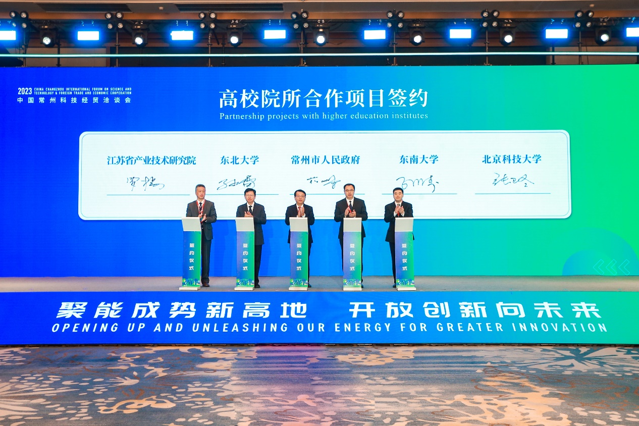 东北大学与常州市有着良好的合作基础,多年来与中天钢铁、东方特钢等多家在常企业保持产学研全面合作关系,东北大学常州校友会也在今年8月份正式成立。本次洽谈会举行了高校院所合作项目签约活动,孙雷代表东北大学与常州市人民政府正式签署《常州市人民政府——东北大学战略合作框架协议》。按照合作协议,校地双方将在战略决策咨询、教育学术合作、科技创新合作、人才交流合作等方面建立战略合作关系,共同打造高能级开放平台,促进高校科技资源与地方经济建设有机结合,推进常州加快建设长三角创新中轴和产业科技创新中心,推动东北大学“双一流”建设,主动融入服务“一带一路”、长江经济带、长三角一体化发展等国家重大战略,引领新产业、新业态、新模式的创新浪潮。签约仪式结束后,孙雷一行在常州市科技局负责人陪同下参观了常州“两湖”创新区规划展示馆。
