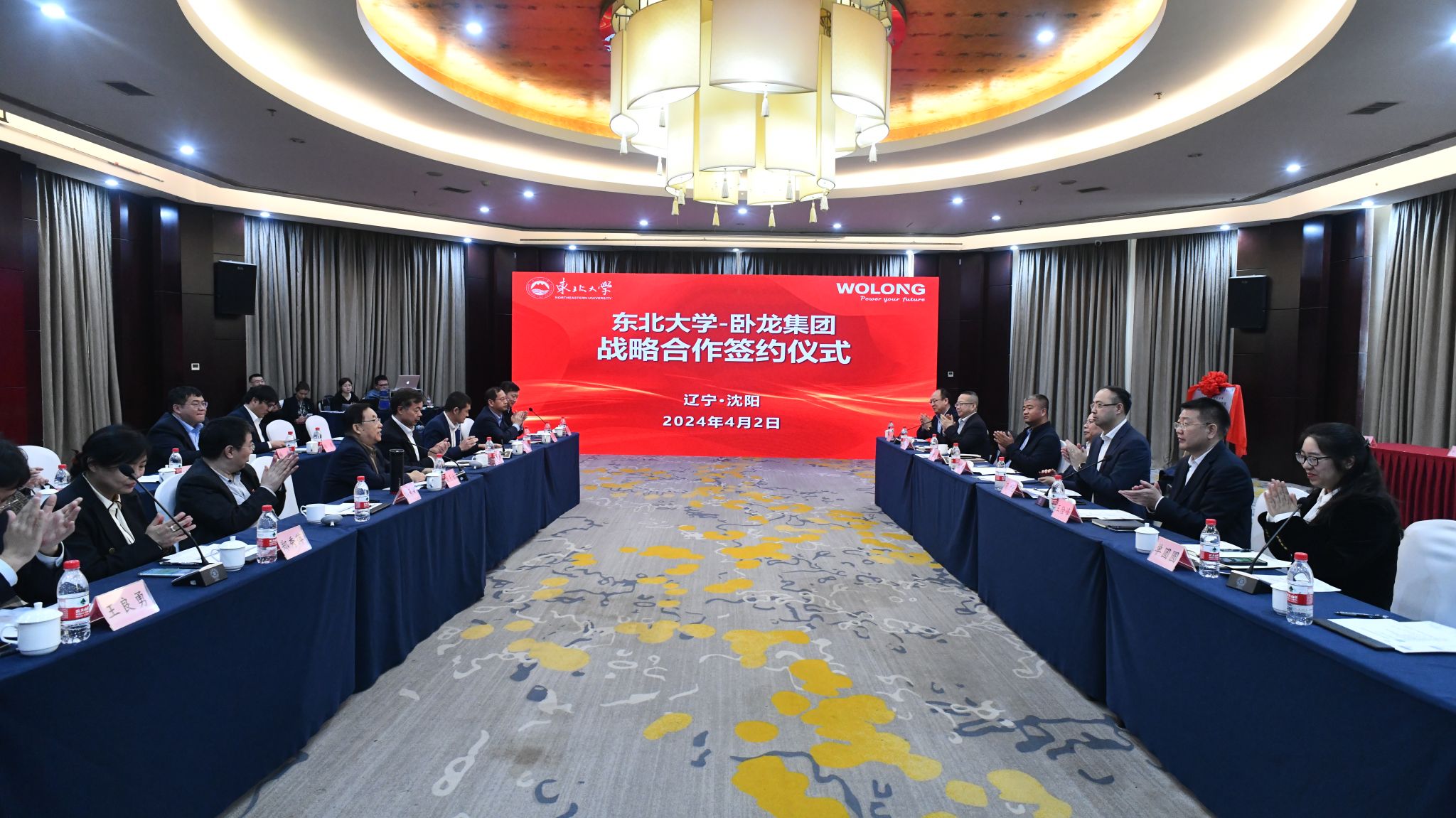 4月2日上午,东北大学与卧龙集团战略合作签约仪式在东北大学国际交流中心聚贤厅举行。
