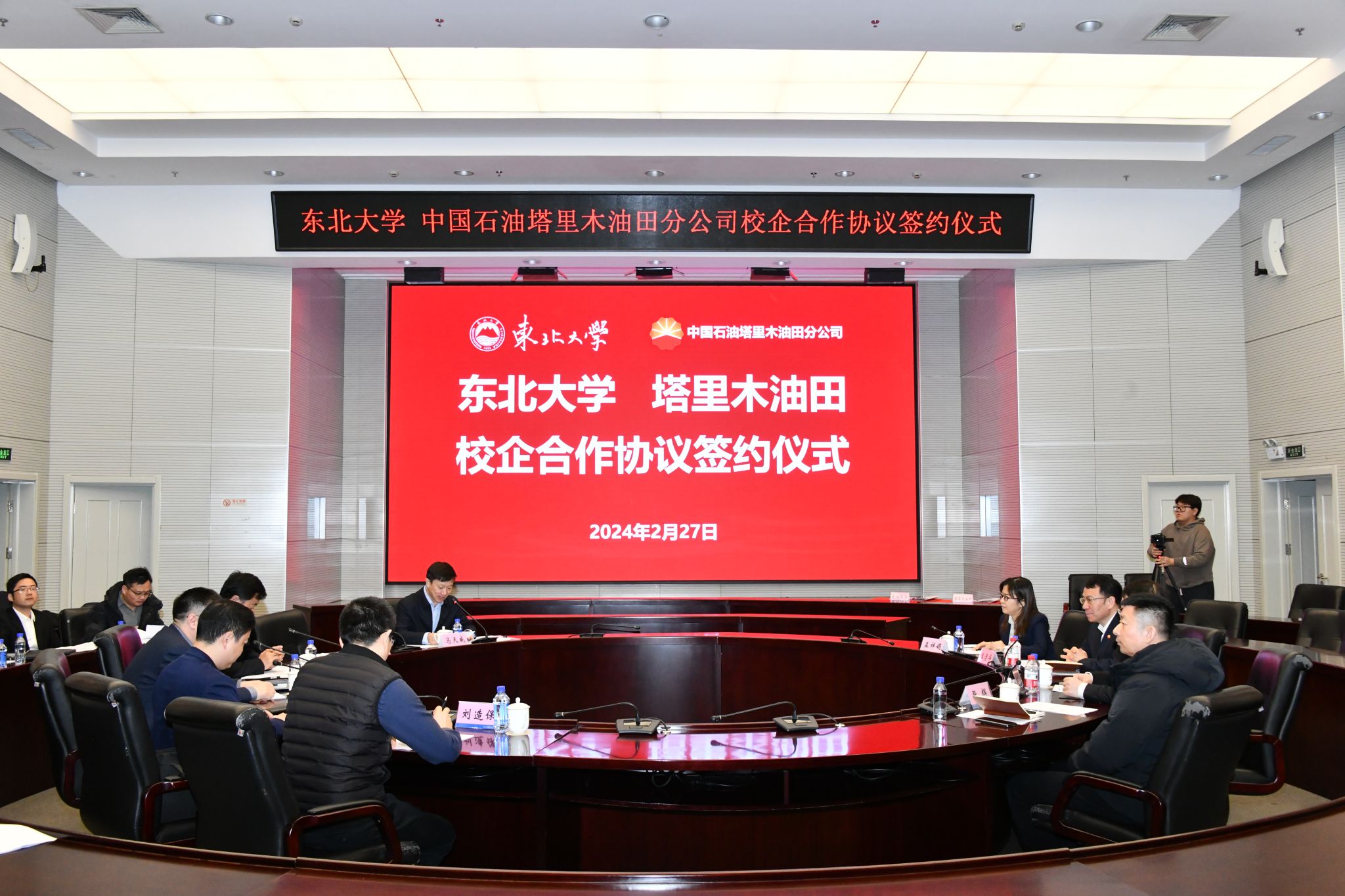 2月27日,东北大学与中国石油天然气股份有限公司塔里木油田分公司合作签约仪式在东北大学主楼824室举行。东北大学校长冯夏庭,塔里木油田执行董事、党工委书记王清华出席签约仪式。副校长张皓出席会议。塔里木油田科技管理部、勘探开发研究院相关负责人,东北大学研究生院、科学技术研究院、对外联络与合作处以及深部工程与智能技术研究院相关部门负责人参加会议。